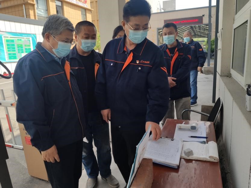 督导检查组检查集团园区大门疫情防控工作情况,叮嘱工作人员守好疫情防控第一道防线。