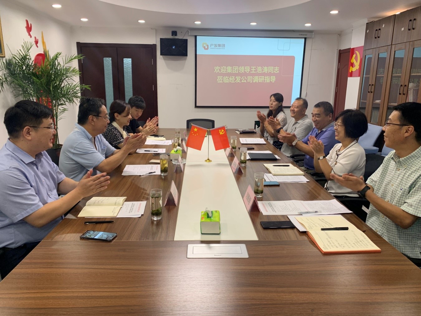 8月5日上午,产发集团党委委员、副总经理王浩涛同志一行到济南经济发展有限公司进行调研。企管集团党委书记、董事长张欣同志,党委副书记、总经理朱风亮同志等陪同调研。经发公司党支部书记、执行董事长刘涛同志以及经发公司经营班子成员迎接调研并汇报工作。