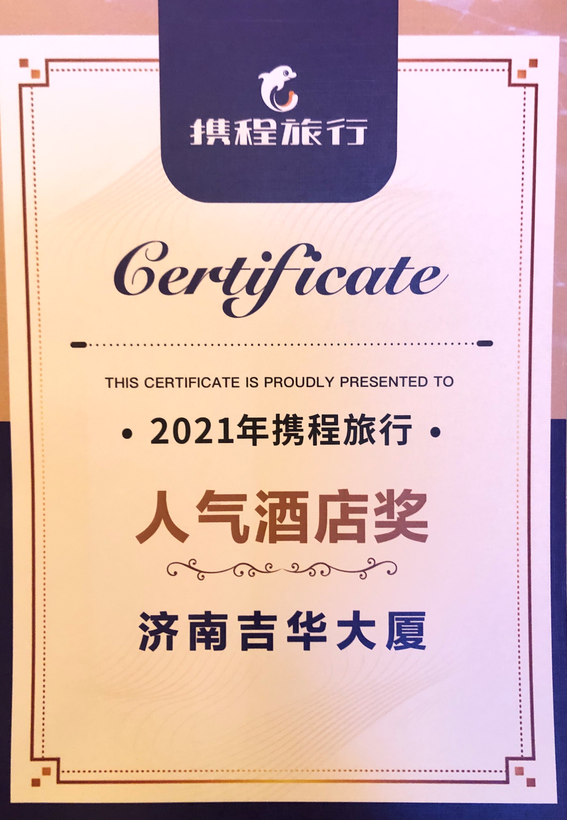 日前,由携程旅行网主办的"2021年携程集团全球合作伙伴峰会"盛典在中国澳门隆重举办。产发企管集团权属企业济南吉华大厦以热情贴心的服务赢得了众多宾客的青睐与好评,荣获“ 2021携程旅行人气酒店奖”。