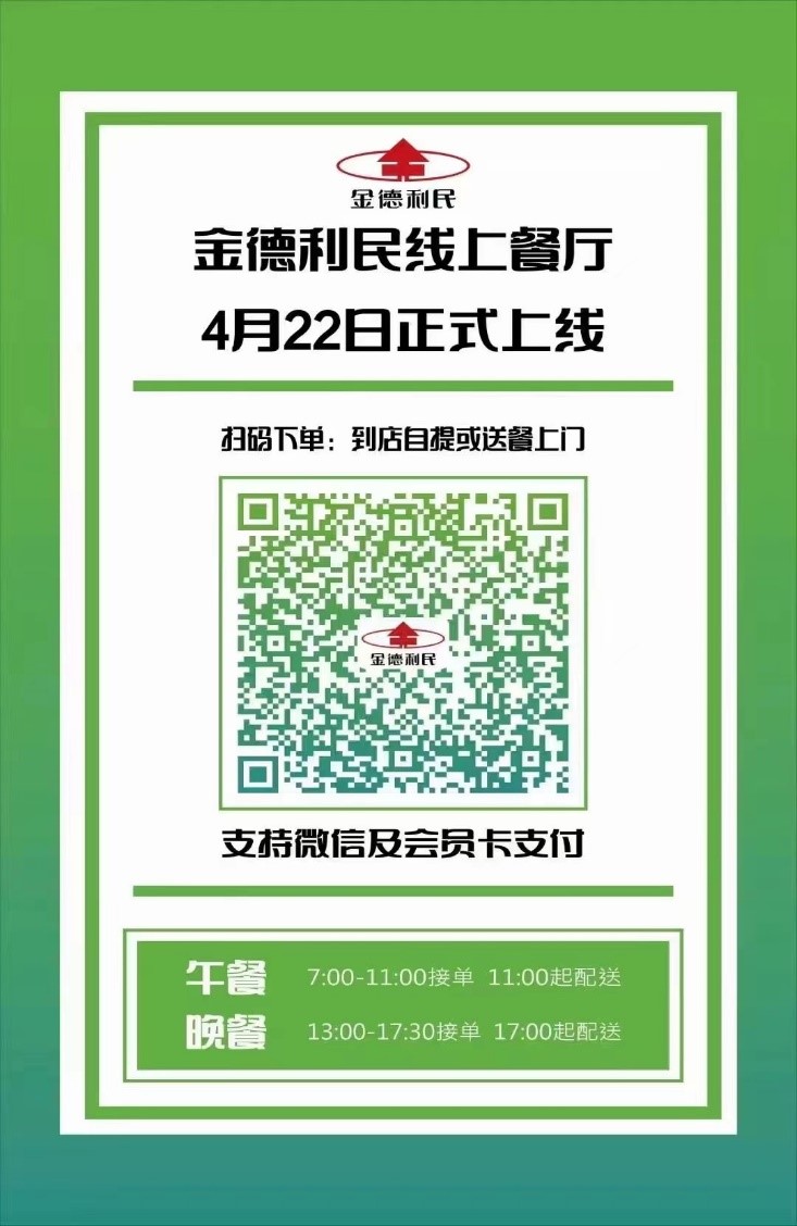 据了解,自近期疫情发生后,金德利集团作为国家商务部主食加工示范企业,积极发挥民生供应的市场主渠道作用和担当精神,责无旁贷保障民生。李大爷一家与金德利青年西路快餐店的故事只是其中的一个缩影。在目前禁止堂食的要求下,金德利正转变经营模式,通过店面打包售卖、送餐、开发线上渠道等方式服务广大市民,真正助力疫情防控,保障民生供应。