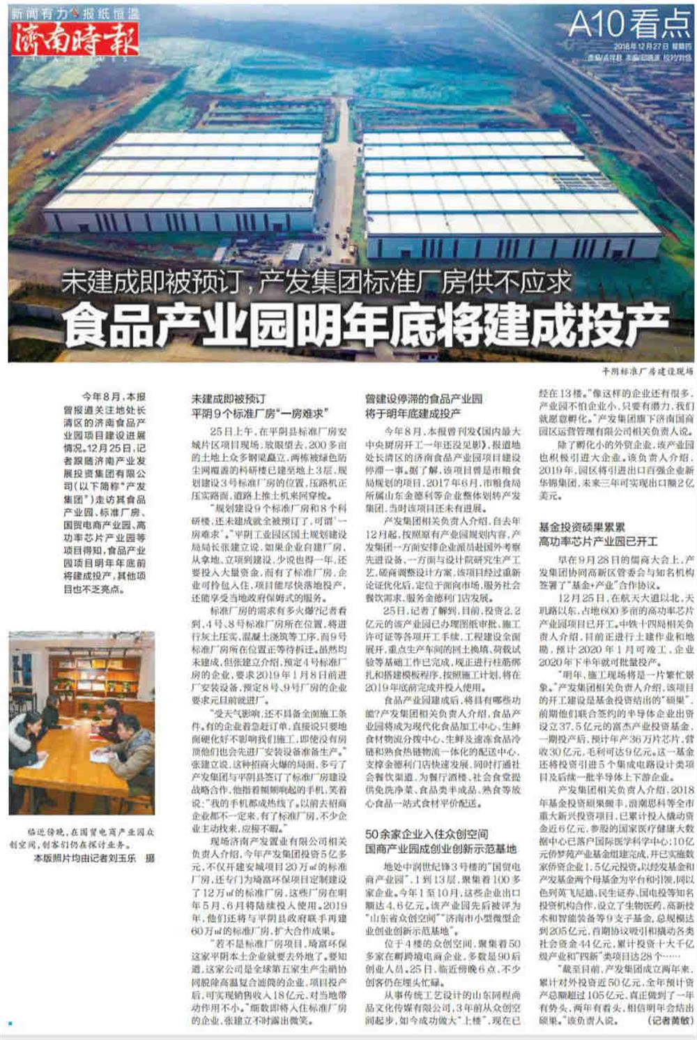 今年8月,本报曾刊发《国内最大中央厨房开工一年还没见影》,报道地处长清区的济南食品产业园项目建设停滞一事。12月25日,记者跟随乐动手机·官方端网站(以下简称“产发集团”)走访其食品产业园、标准厂房、国贸电商产业园、高功率芯片产业园等项目,得知食品产业园项目明年年底前将建成投产,其他项目也不乏亮点。