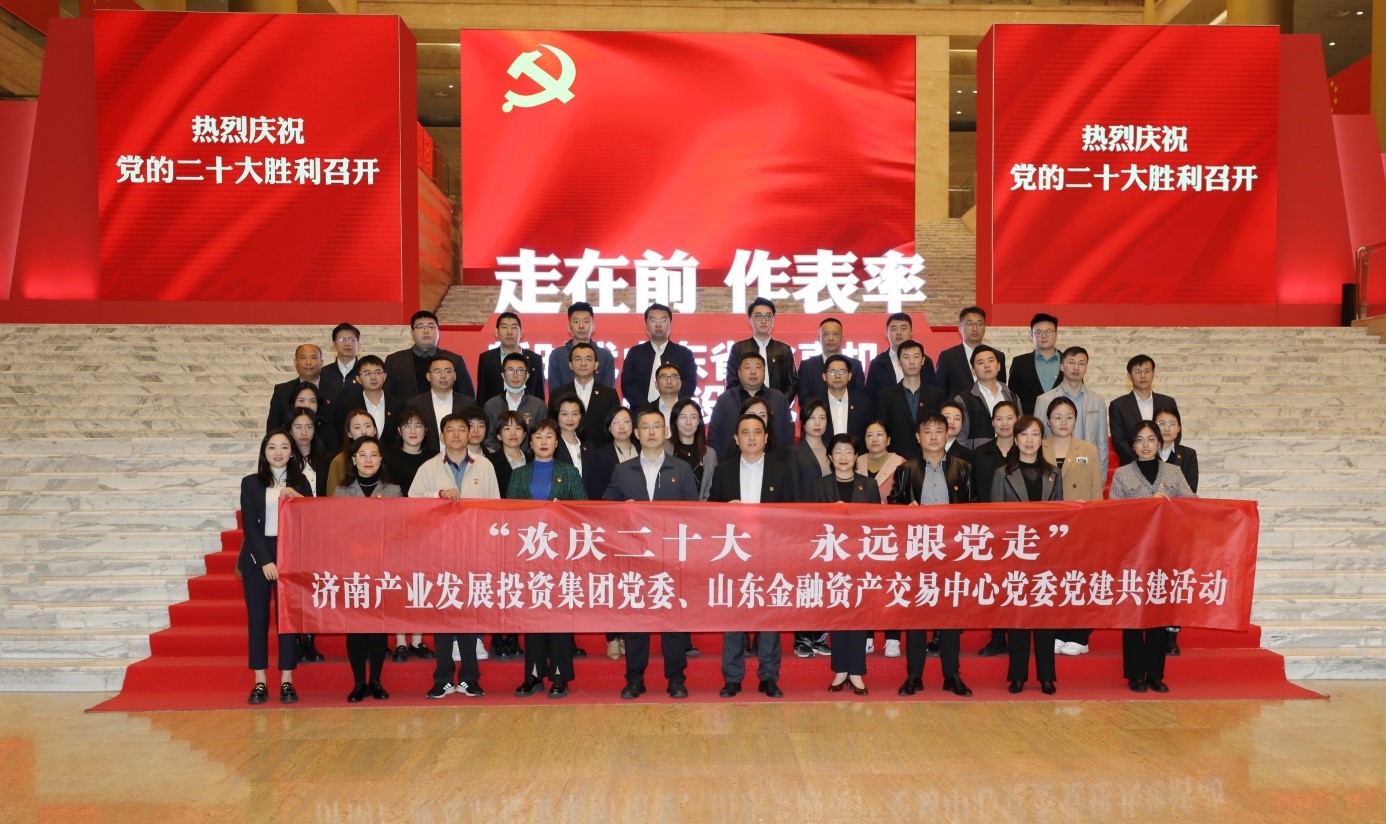 为学习贯彻党的二十大会议精神,进一步激励党员干部职工发挥先锋模范作用,坚守初心使命和责任担当,10月28日下午,济南产发集团党委与山东金融资产交易中心党委联合开展“欢庆二十大 永远跟党走”党建共建暨主题党日活动,两家单位领导班子成员及党员同志共计50余人参加活动。